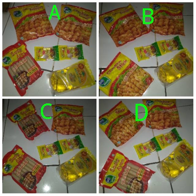 Nugget 250gr extra20%+nugget stik 250gr extra 20%+sosis 375gr+mayonnaise 2 sachet+minyak goreng 500ml