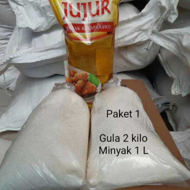 Paket sembako murah 2 kg gula & 1 liter minyak goreng