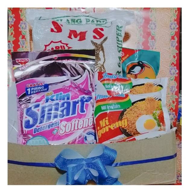 Paket sembako terdiri dari 5kg beras 1bungkus so Klin smart 5bungkus Indomie 1bungkus kecap bango