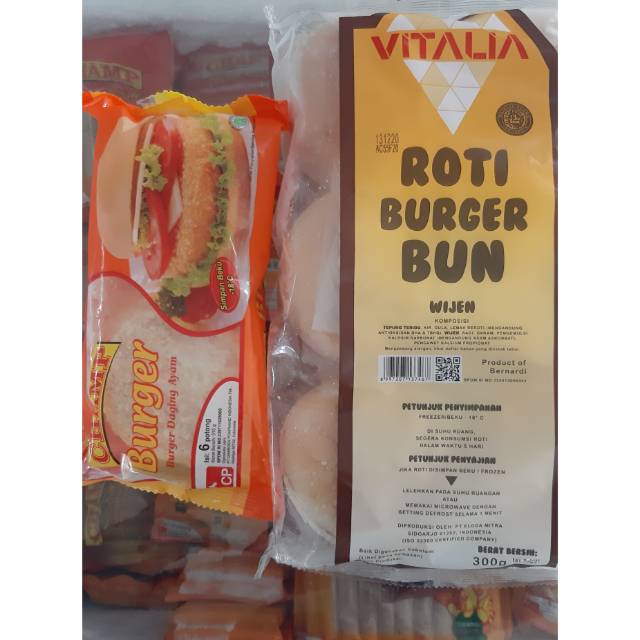 Paketan burger ,crispy chicken burger champ dan roti vitalia isi 6
