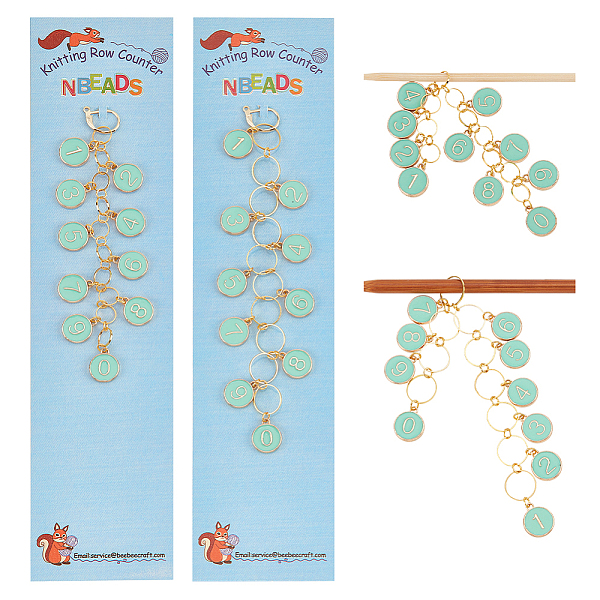 Nbeads 2Pcs 2 Style Alloy Enamel Flat Round Charm Knitting Row Counter Chains, for Tracking Project Progress, Fit for Needles Up To 6mm/10mm, Lime GreenSize: