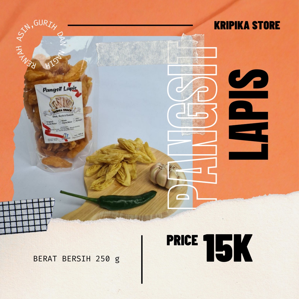 Terbuat dari kulit lumpia yang digoreng hingga teksturnya renyah saat digigit. Perpaduan rasa asin dan gurih menjadikan pangsit ini sangat cocok dikonsumsi sebagai cemilan dan disajikan dengan bakso, soto, mie, dll