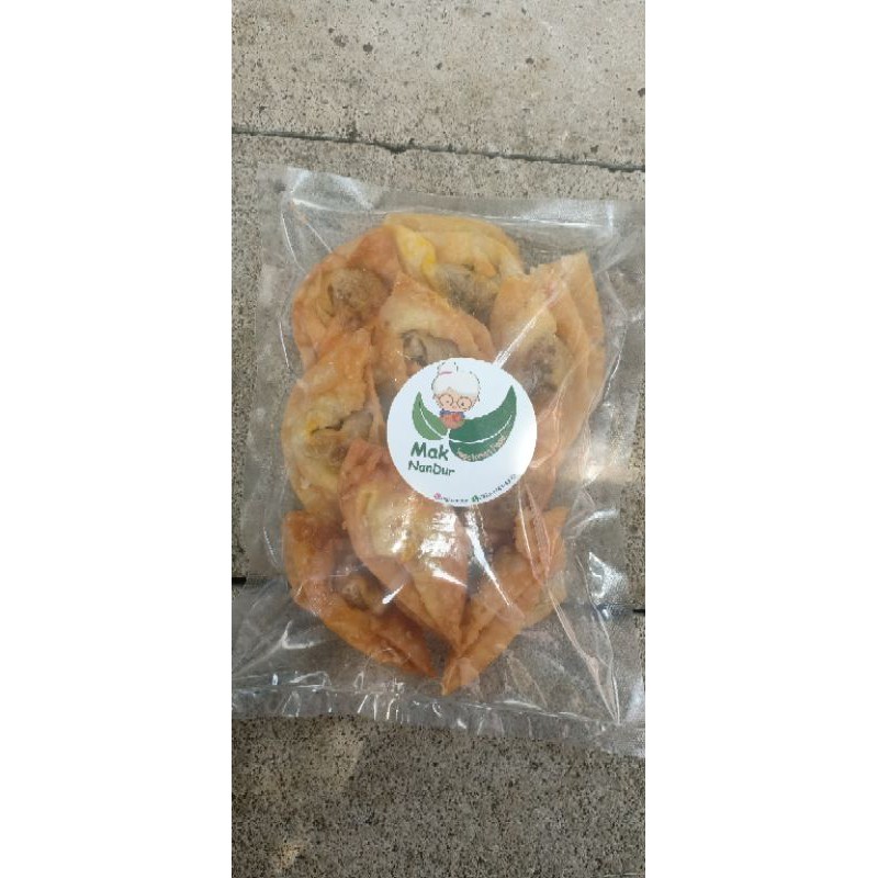 pangsit goreng dengan isian jamur, tidak ada unsur hewan, susu,telur,bawang2an& Msg. cocok d jadikan snack dan mie. wangi dan enak.stok terbatas karena fresh. bila ingin pesan banyak silakan dm.thanks