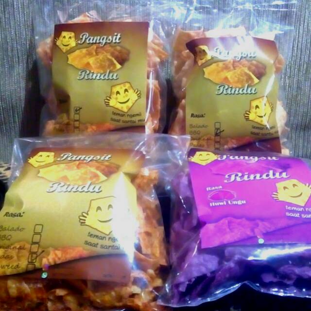 Pangsit rindu makanan khas Bogor dengan beraneka ragam varian rasa ada original, bbq, balado, pedas, rumput laut & ubi ungu cocok sebagai camilan