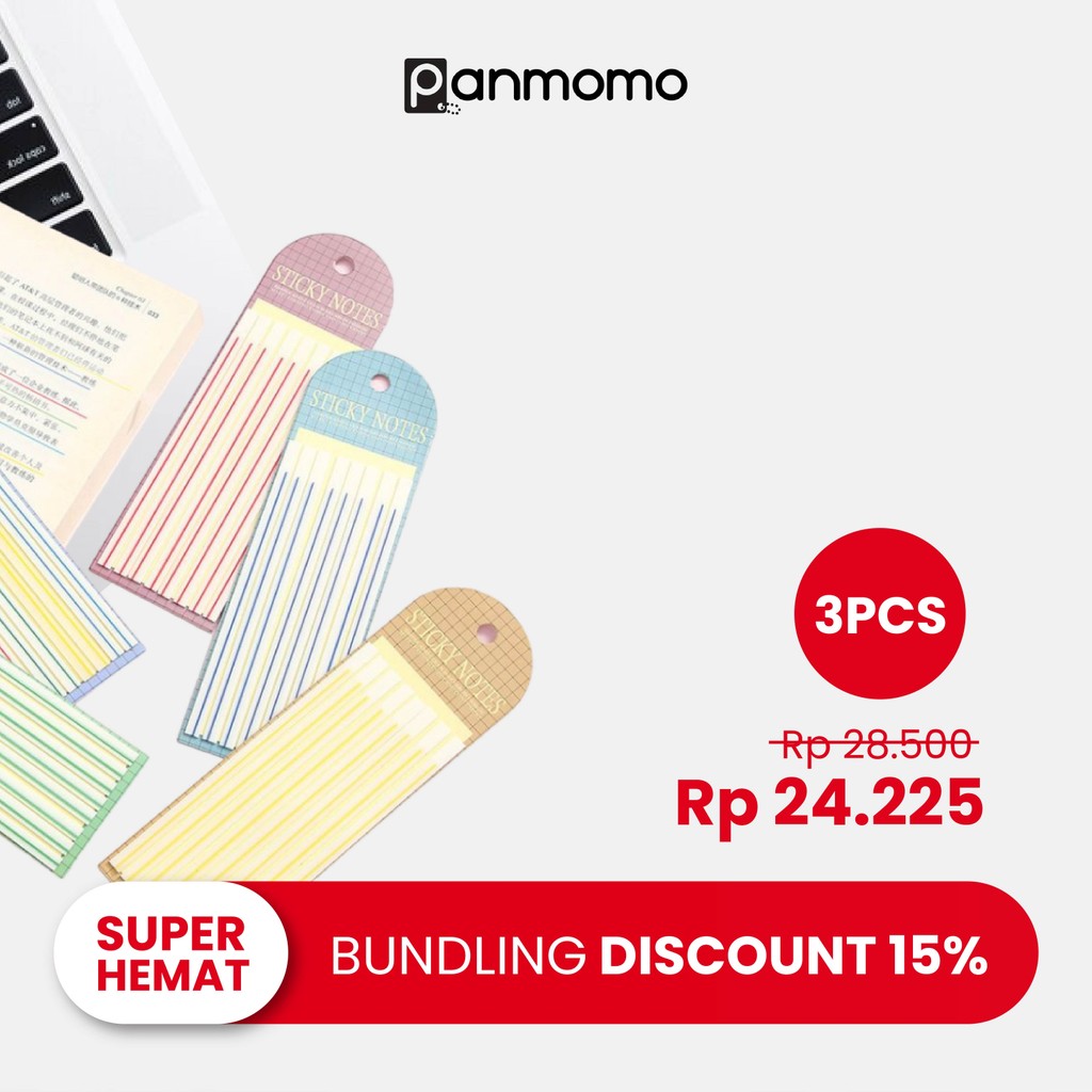 Panmomo Bundle 3 Pcs Sticky Note Garis Bawah Underlining PET