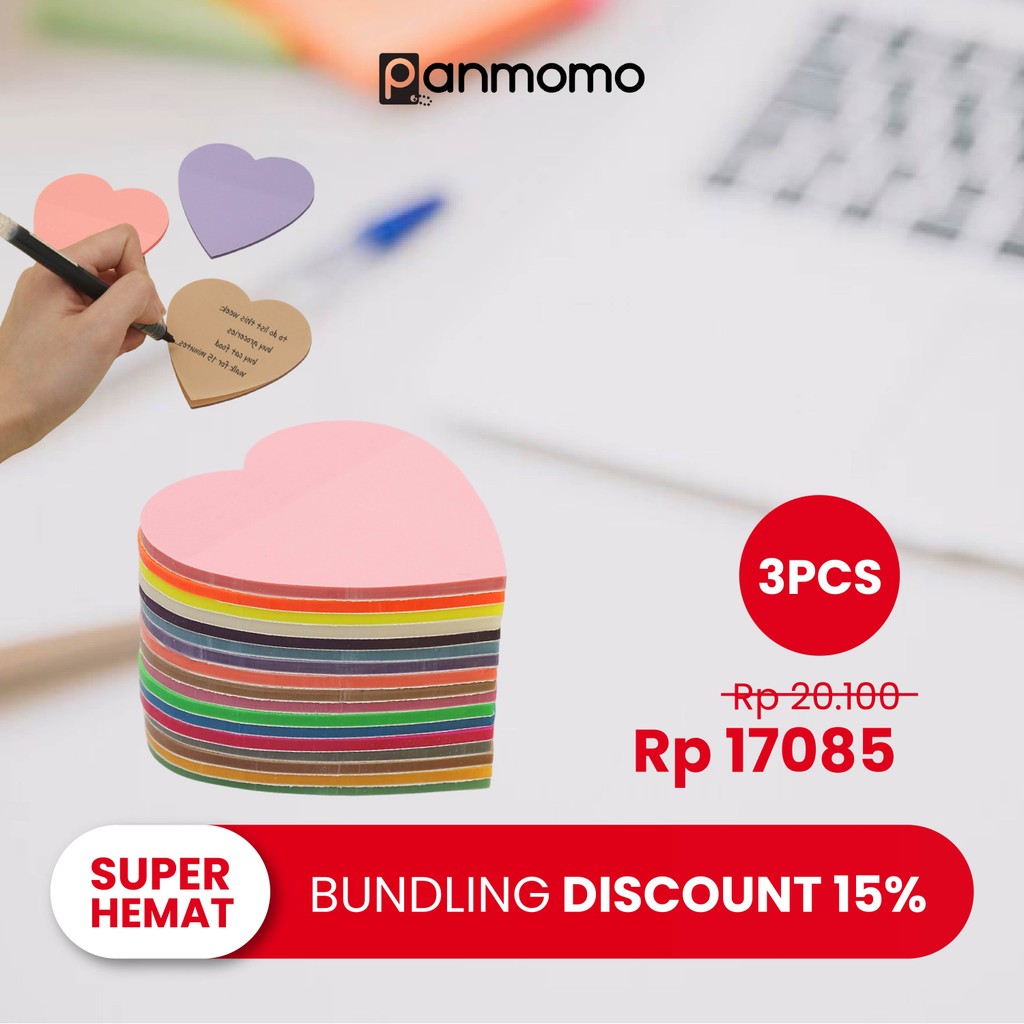 Panmomo Bundle 3 Pcs Sticky Note Transparan Hati Heart Love