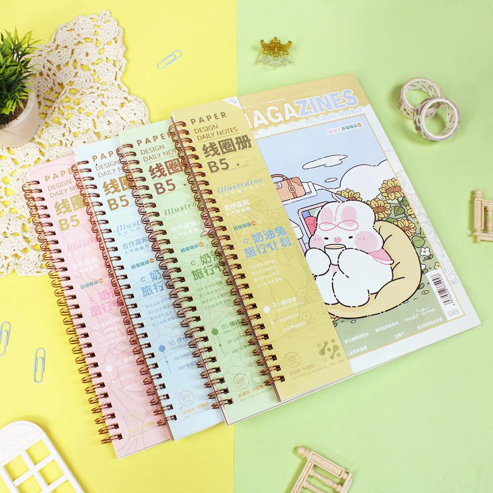 Panmomo Cream Rabbit On Vacation Spiral Ruled Notebook B5 - Buku Catatan Bergaris