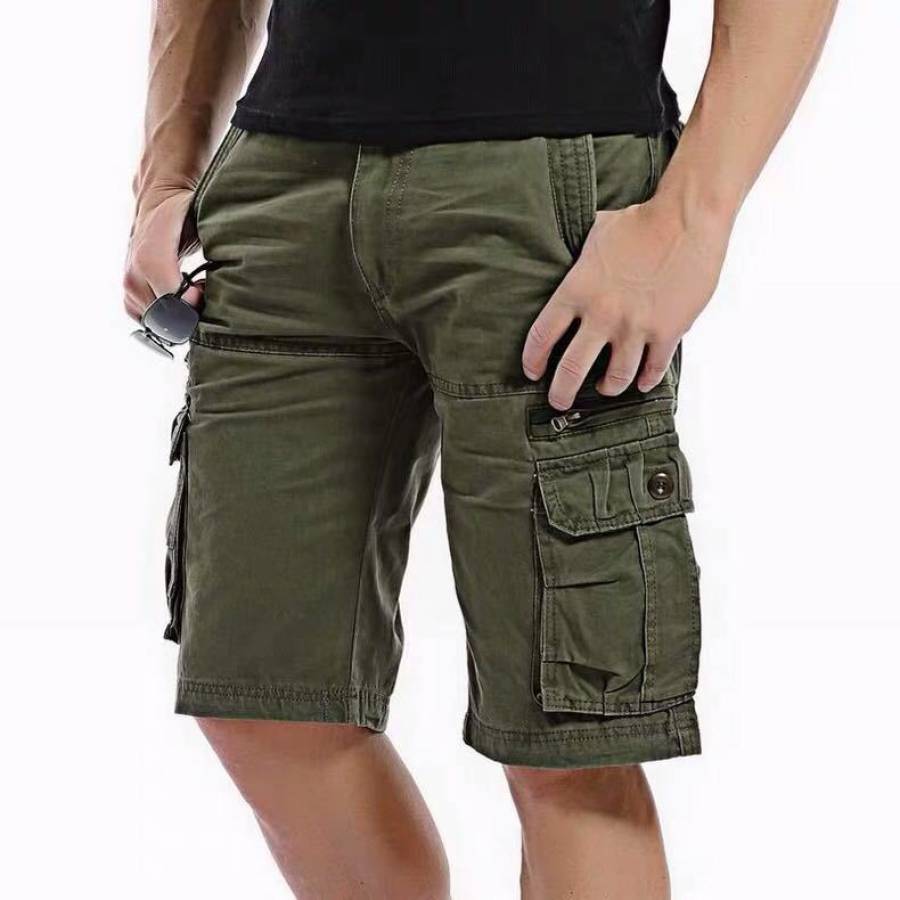 Pantaloncini Cargo Da Uomo In Cotone Multitasche Con Zip