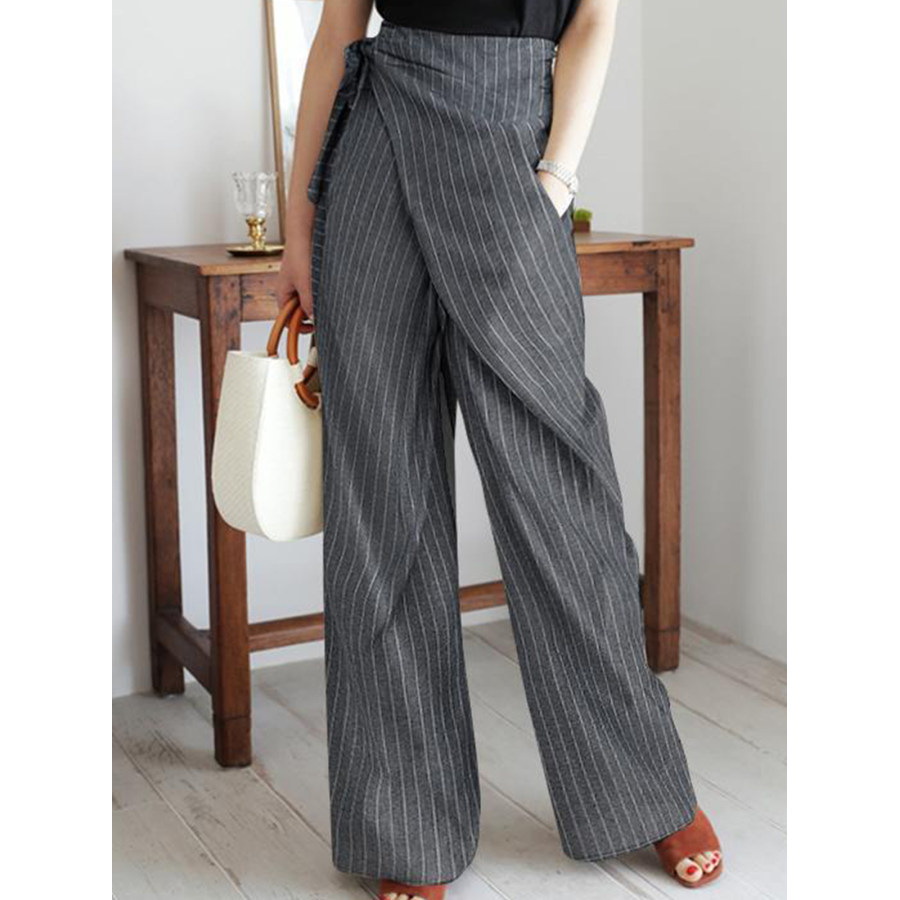Pantaloni Casual Con Lacci A Righe Retrò Da Donna