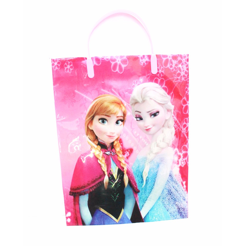 bahan plastik gambar sablon karakter frozen,ready warna pink.