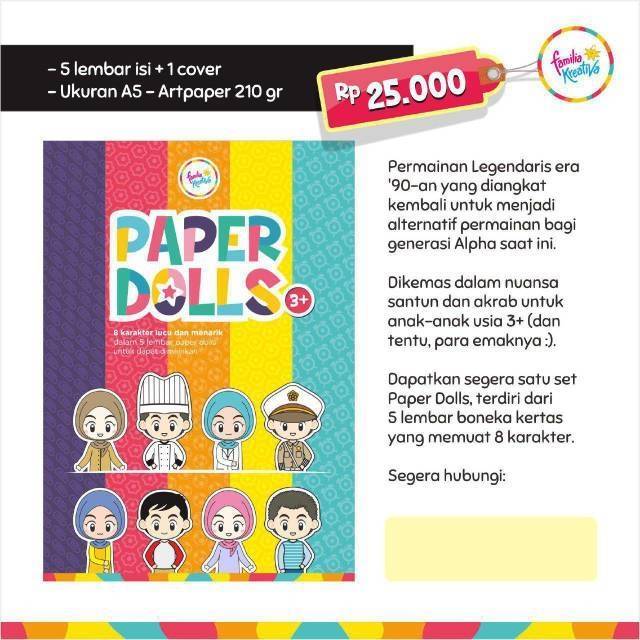 mainan sederhana ini bisa multi-manfaat bagi anak dan orang tuanya... Bagi anak-anak tentunya Paper Dolls ini bisa menjadi alternatif bermain gawai, kemudian bisa menjadi media storytelling, baik secara mandiri maupun bersama orang tua dalam mengajarkan value-value kehidupan keseharian. Paper Dolls ini juga bisa melatih kreativitas, kerjasama, ketelitian, menstimulus motorik halus dan indera sensori, serta juga dapat mengembangkan empati melalui cerita yang dibawakan orang tua.