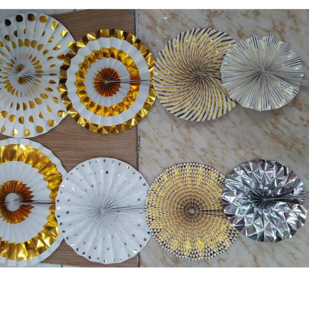 Paper Fan Gold Set / Paper Flower Gold Set 8 In 1