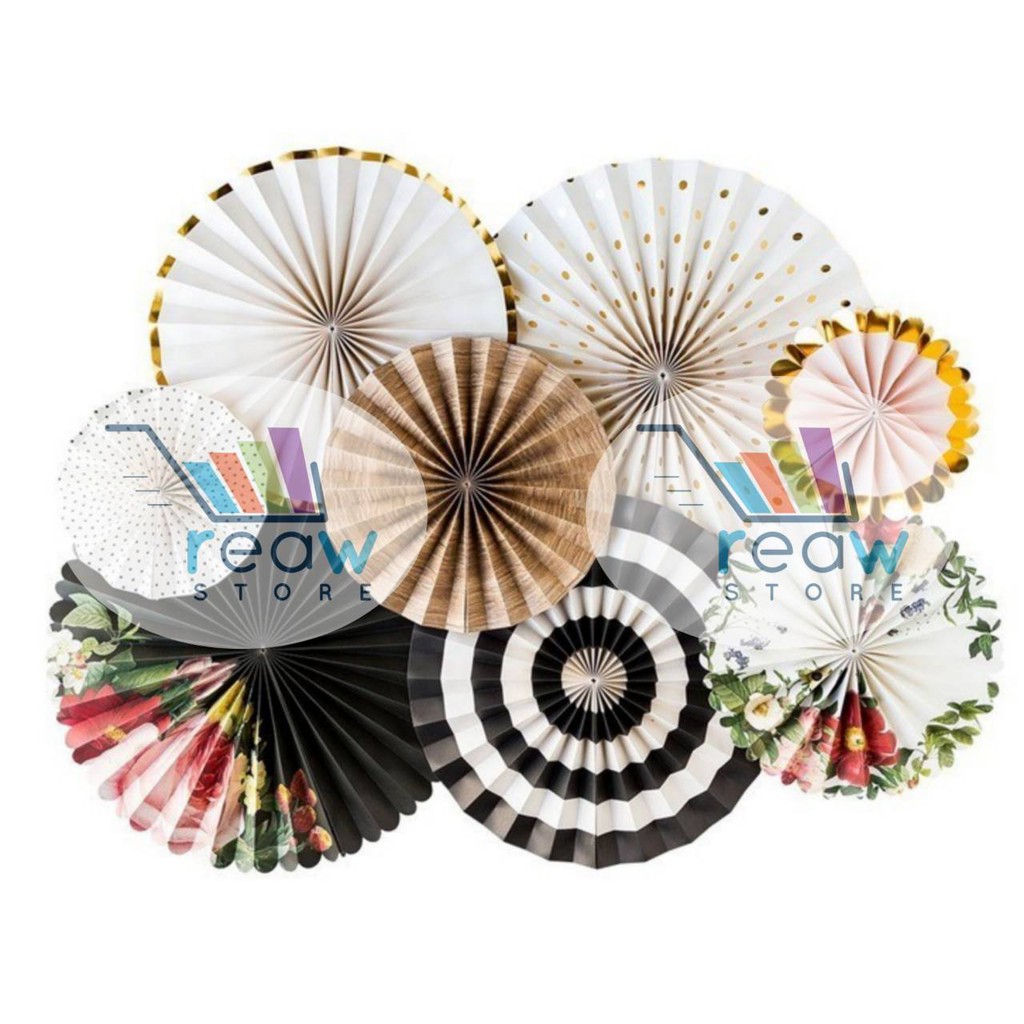 Paper Fan / Paperfan Set Gold Hitam Putih dan Bunga
