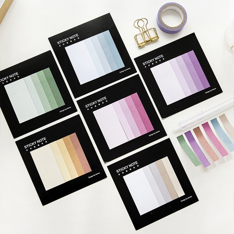Catatan tempel (post-its) berbentuk strip lurus dengan gradasi warna-warna yang lembut.