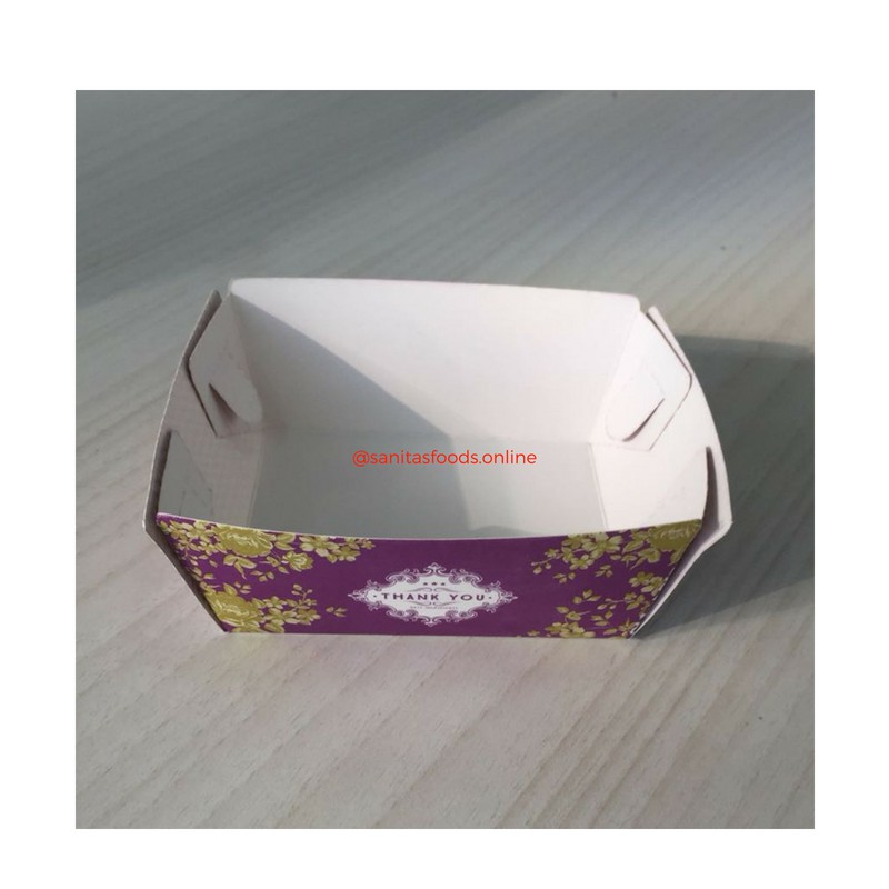 Piring kertas bentuk tray, ukuran 9 x 7.5cm.