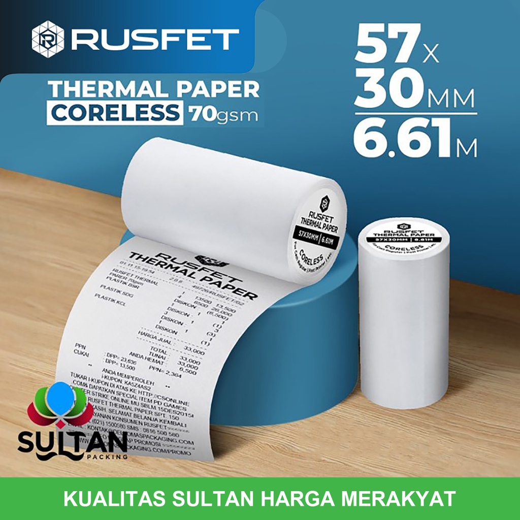 Paper Thermal Kertas Termal Printer Struk Kasir Barcode RUSFET 57x30mm