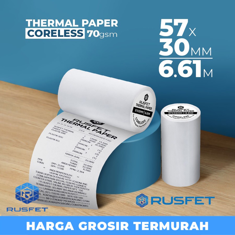 Paper Thermal Kertas Termal Printer Struk Kasir Barcode RUSFET 57x30mm