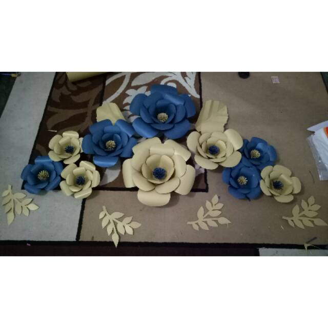 Paper flower 10 bunga 6 daun. 2 large 2 medium 6 small
