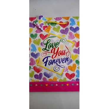 paper bag kiky tali motif love ukuran C 330x265x135 mm