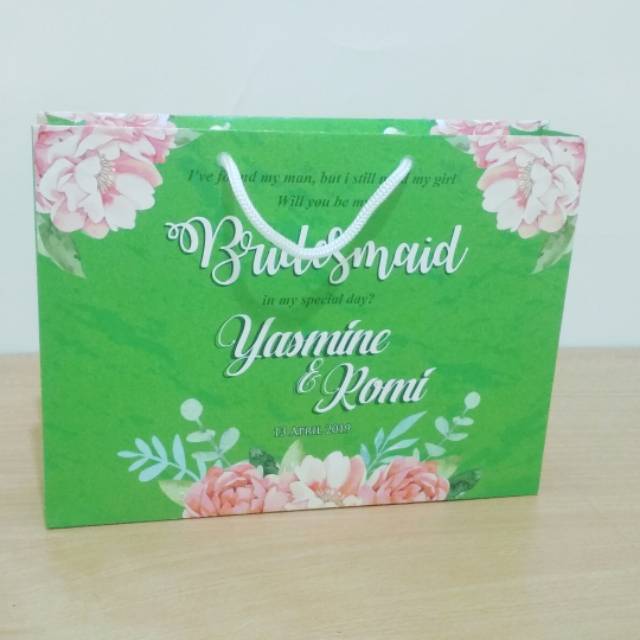 Hai sis kami menerima pembuatan Paperbag Bridesmaid Costum dengan design sesuai kemauan kamu loh , gak hanya untuk bridesmaid paperbag ini juga bisa untuk ulang tahun dan acara lainnya