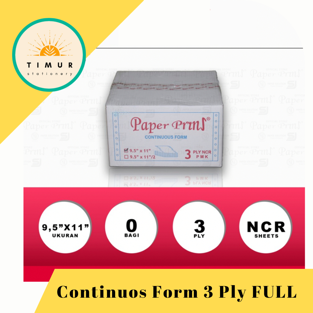Paperpryns Kertas Continuous Form / Kertas Komputer 3 Ply Rangkap 3 Full / 3 Rangkap Bagi 2
