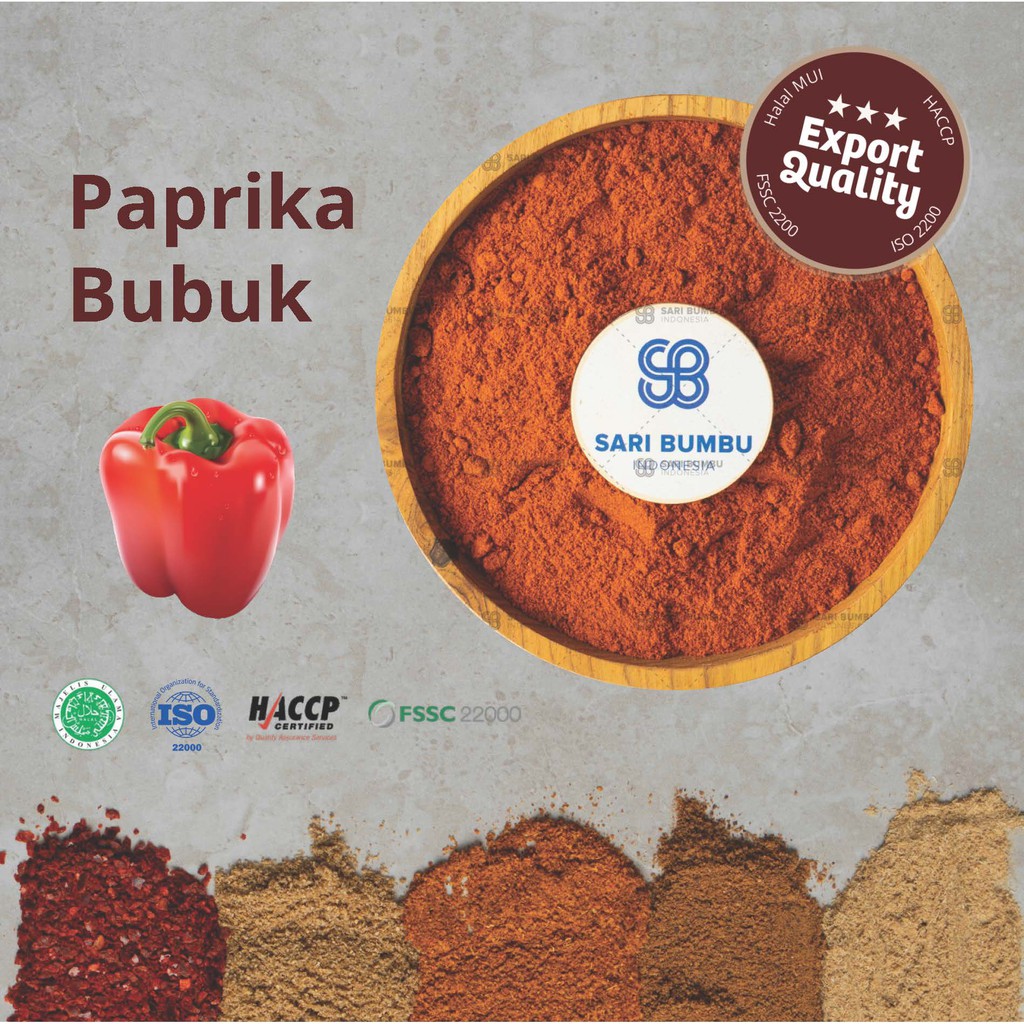 Paprika Bubuk yang di proses dengan sangat higienis dengan standar mutu Internasional. Paprika Bubuk ini murni tanpa campuran dan melewati 3 tahapan pembersihan dengan mesin standar produksi untuk Ekspor ke Jepang. Cita rasa original dengan aroma yang berkelas membuat Paprika Bubuk ini biasa digunakan untuk penggunaan Industri Makanan (Bumbu), Pengemasan ulang retail, Produk F&B, Restaurant, Makanan Cepat Saji, Kafe, Bakery, Penggunaan Rumah tangga.
