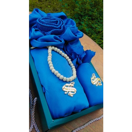 dengan kotak hantaran yang elegan terdiri dari satu set mukena,tasbih dan mini sajadah. mukena berbahan satin