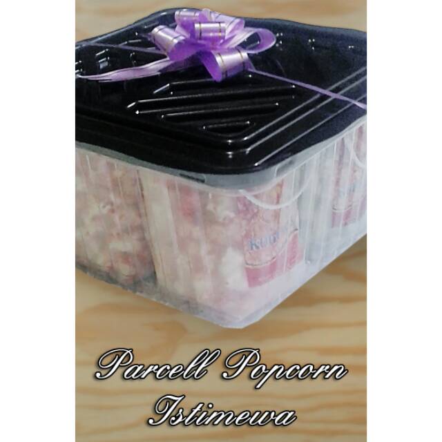 Dalam 1 Parcell : terdiri dari 4 Pcs Popcorn, dan masing" Pcs berat kurang lebih 50 Gram, untuk berat produk Setara/Sama dengan 1 paket Parcell Popcorn yaitu kurang lebih 250 Gram, serta dalam 1 paket parcell tersedia 2 warna Popcorn (Merah dgn Hijau), Wadah mika putih transparan dgn tutup berwarna Coklat agak kehitaman.