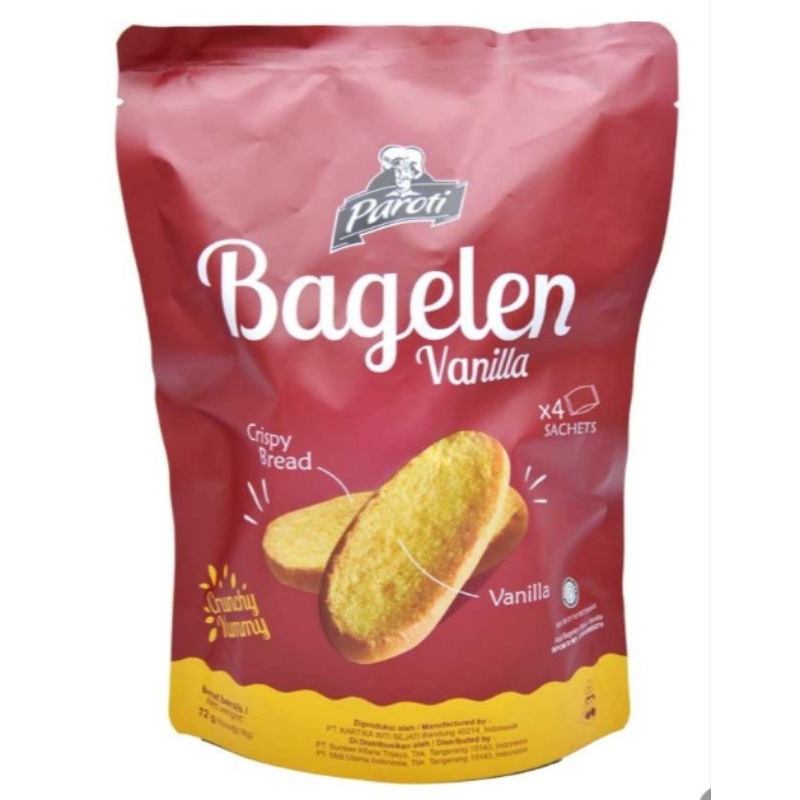 Paroti Roti Bagelen Vanilla 72 g adalah salah satu jenis pastry yang memiliki tekstur renyah. Dibuat menggunaan bahan bahan pilihan serta berkualitas, dan diolah secara higienis menggunakan teknologi modern, menghasilkan roti bagelen yang lezat saat disantap. Melalui teknik pemanggangan dan pengeringan yang sempurna membuat roti memiliki tekstur yang renyah ketika digigit. Dengan olesan campuran mentega dengan perisa vanilla, sehinga roti bagelen memiliki rasa manis yang pas dan aroma vanila yang kental. Dikemas menggunakan standing pouch ukuran 72 gram yang terdapat empat kemasan sachet praktis di dalamnya. Cocok dijadikan maanan pendamping saat ngeteh atau ngopi, dan dapat dijadikan bekal cemilan saat perjalanan. Segera beli Paroti Roti Bagelen Vanilla 72 g dan rasakan kenikmatan roti bagelen renyah..