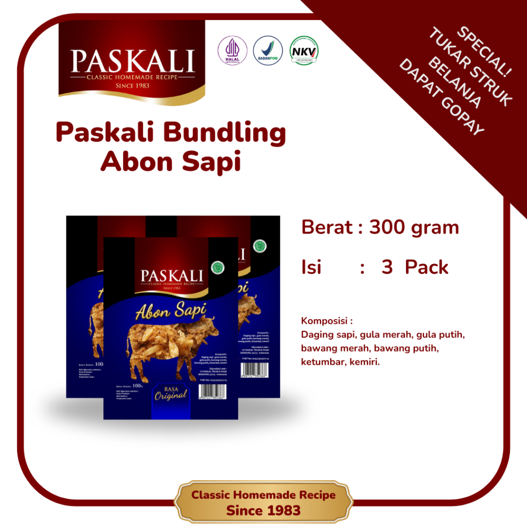 Paskali Bundle Abon Sapi 100 Gram (Isi 3 Pack) – SAJIAN SEHAT & LEZAT UNTUK KELUARGA INDONESIA