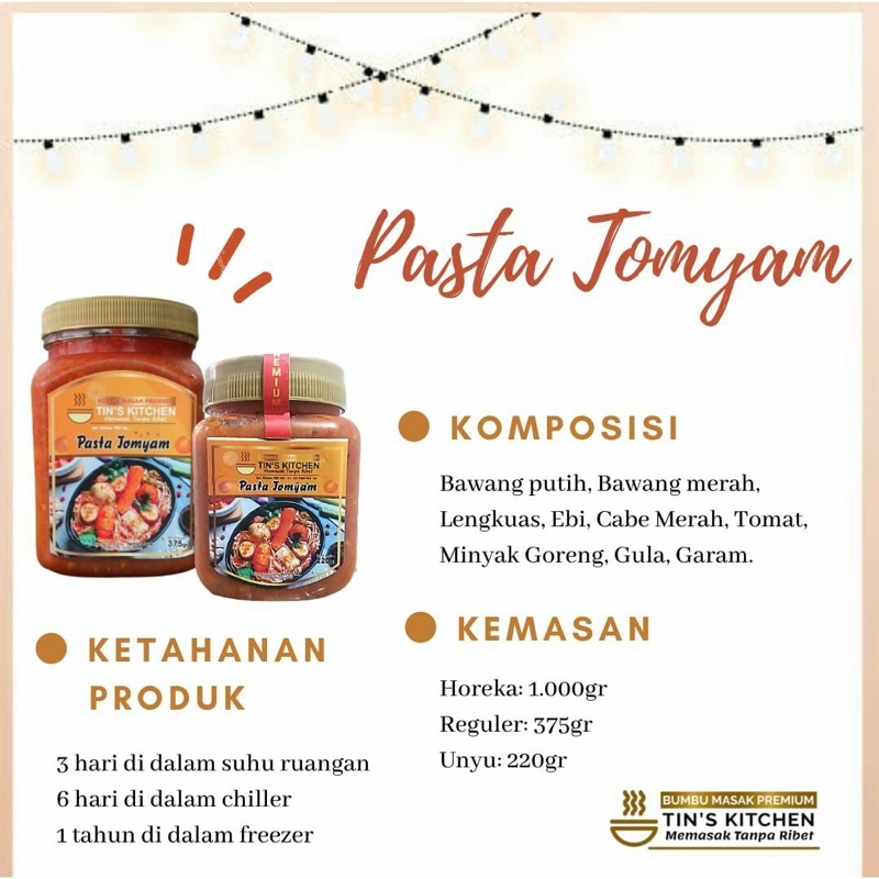 Mau buat tomyam tapi bingung bumbu-bumbunya ? Pakai pasta tomyam dari Tin’s Kitchen aja .. praktis tinggal cemplung.