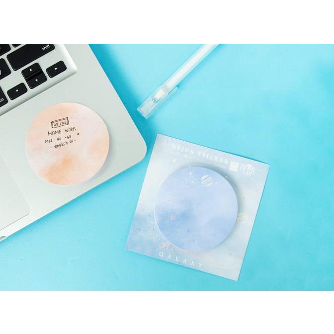 Agar tidak tersesat di luar angkasa, tulis pesanmu di atas catatan tempel bertema galaksi ini. Delapan desain galaksi dan rasi bintang dalam warna-warni pastel akan menemanimu menulis pesan dan reminder yang bisa ditempel di dinding atau meja kerjamu. Masing-masing berisi 75 lembar, lebih puas dipakai dibandingkan dengan sticky notes biasanya.