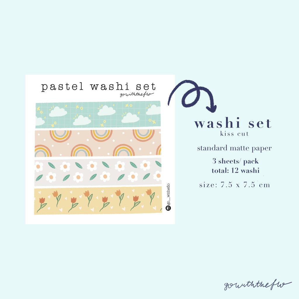 Our Pastel Washi Set is perfect to use for journaling, spicing up your planners or decorating your mail to send to your buddies! Just like a washi tape, it is writable, so you can personalise each of the washi. This set comes with a cloud, rainbow and 2 floral designs!