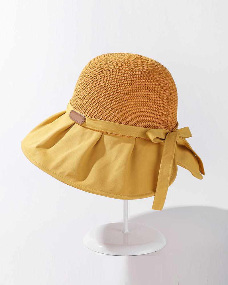 Patchwork Bowknot Decor Drawstring Bucket Hat, Yellow