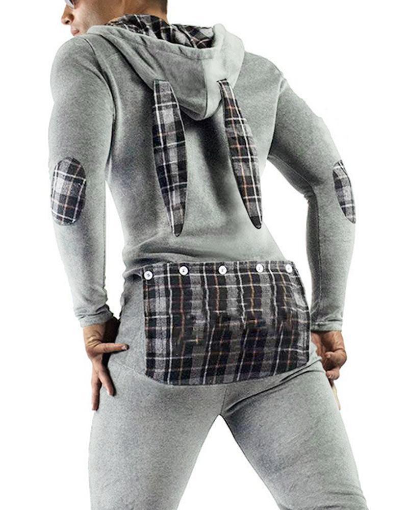 Patchwork Rabbit Ears Hooded Jumpsuit, Light gray