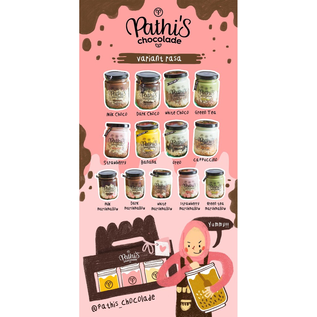 Pathis Chocolade adalah Coklat leleh premium yang dipadu dengan Rice Crispy, dengan dikemas dalam Jar Kaca :)
