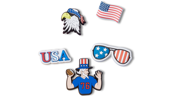 Pop some personality into your shoes with these Patriotic 5 Pack Jibbitz™ charms. They’re the perfect addition to your favorite pairs of clogs, slides, and more.Not a toy. Not intended for children under 3 years of age.