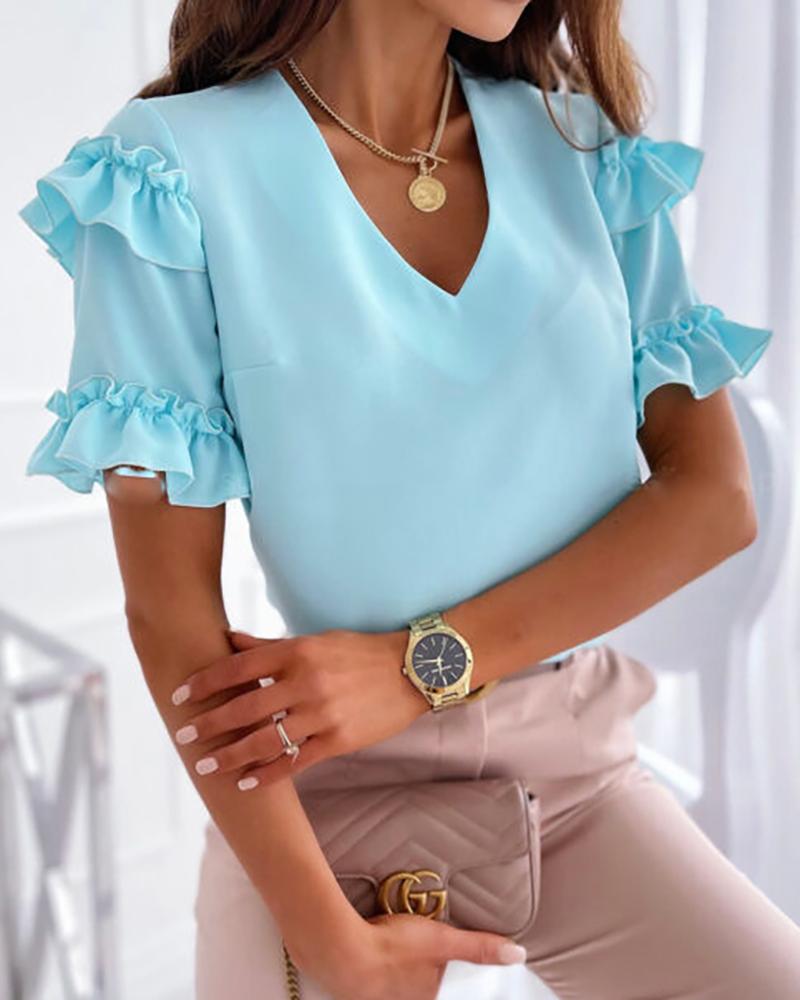 Patterns Print Short Sleeve Loose Blouse, Blue