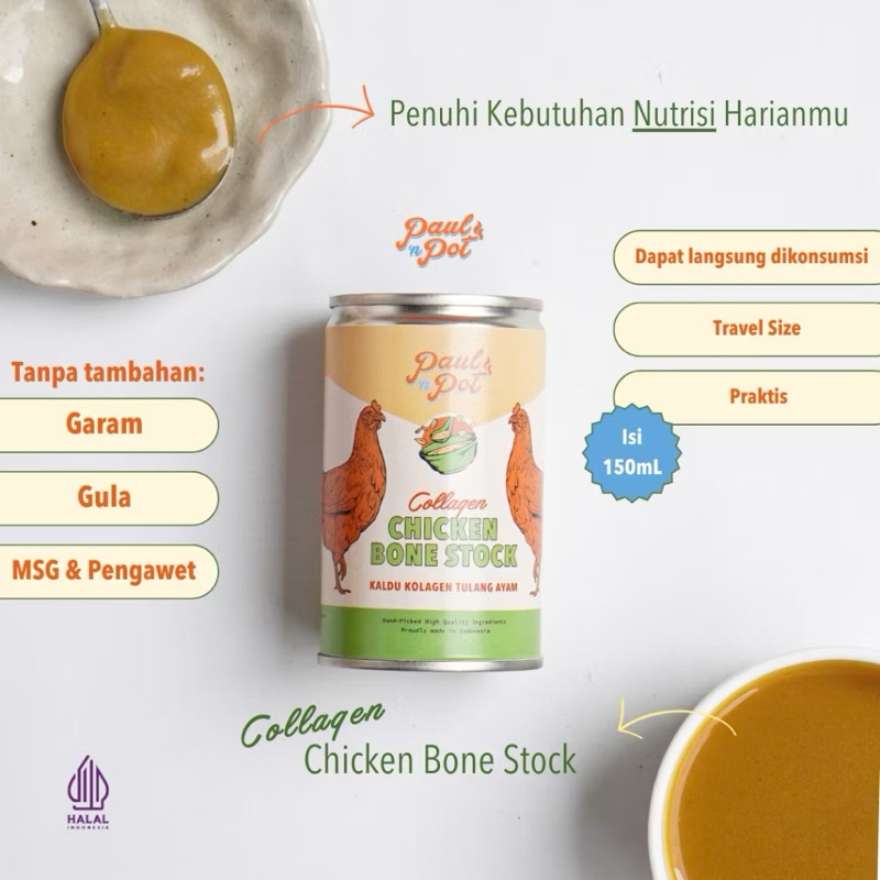 Kaldu Kolagen Tulang Ayam dari Paul ‘n Pot adalah sumber kolagen yang enak dan sehat. Dibuat dari bahan-bahan berkualitas pilihan yang diproses secara higienis terstandarisasi. Cocok untuk diminum langsung hangat atau sebagai bahan sup. Rasakan manfaatnya dengan mengkonsumsi secara rutin minimal 1x sehari.
