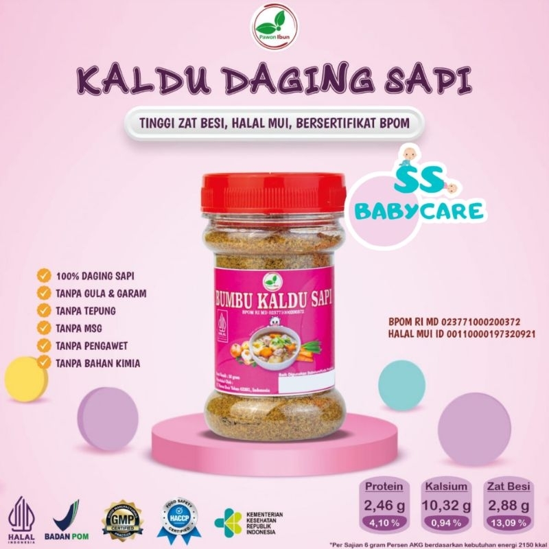 Daging sapi merupakan salah satu sumber protein yang sangat baik bagi anak-anak. Tinggi zat besi yang sangat dibutuhkan untuk anak-anak. Selain itu, kaldu bubuk daging sapi pawon ibun tidak mengandung tepung (gluten free).
