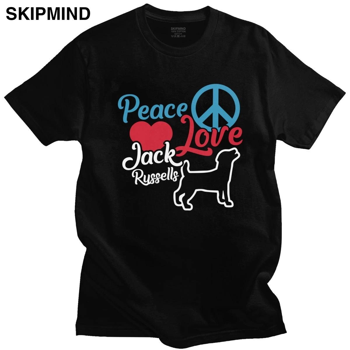 Peace Love Джек Рассел терьер футболка для мужчин мягкая красивая детская хлопковая футболка с короткими рукавами футболка для любителей собак ...