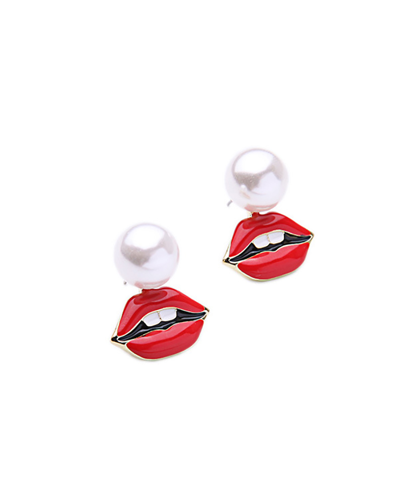 Pearl Lip Pattern Drop Earrings, Red