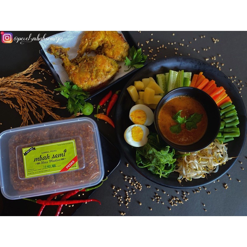 Bumbu pecel Mbah Semi asli dari madiun di buat oleh Mbah Semi sejak tahun 1990. Bumbu pecel Mbah Semi tanpa bahan pengawet dan 100% menggunakan bahan alami. Dan kami juga terdaftar di P.IRT resmi di pemerintah.