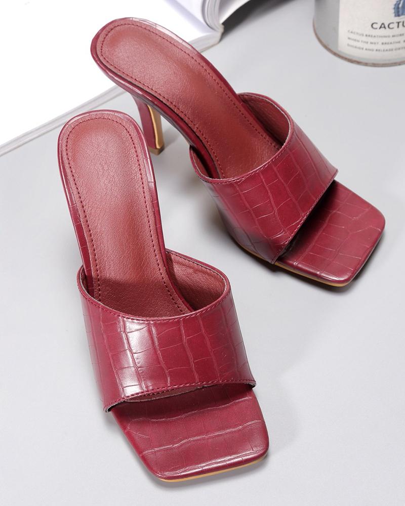 Peep Toe Checked Pattern Heeled Sandals, Brown