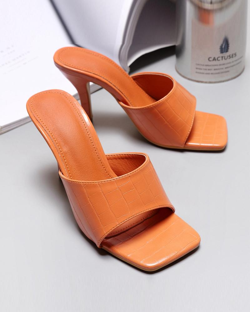 Peep Toe Checked Pattern Heeled Sandals, Orange
