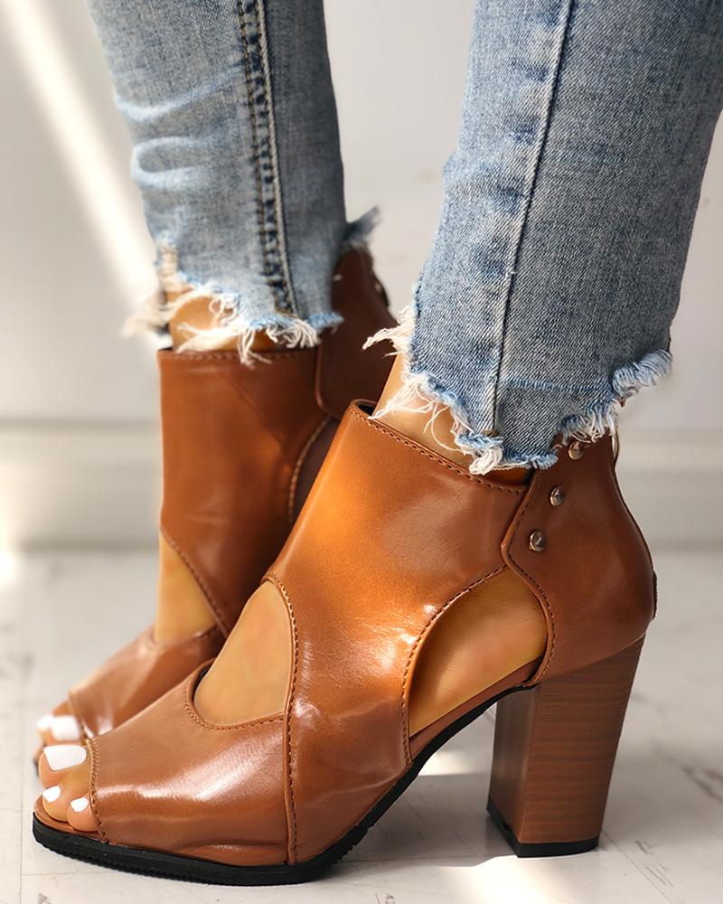 Peep Toe Cutout Rivet Chunky Heeled Boot, Yellow