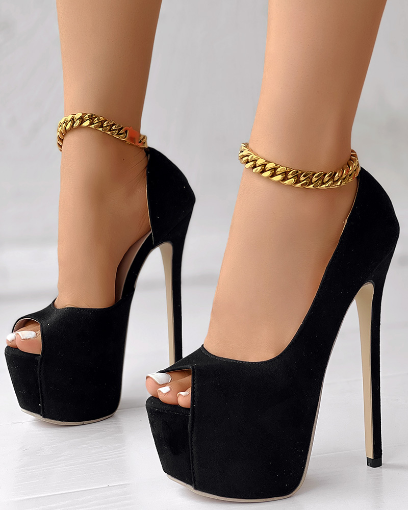 Peep Toe Platform Stiletto Heel Pumps, Black