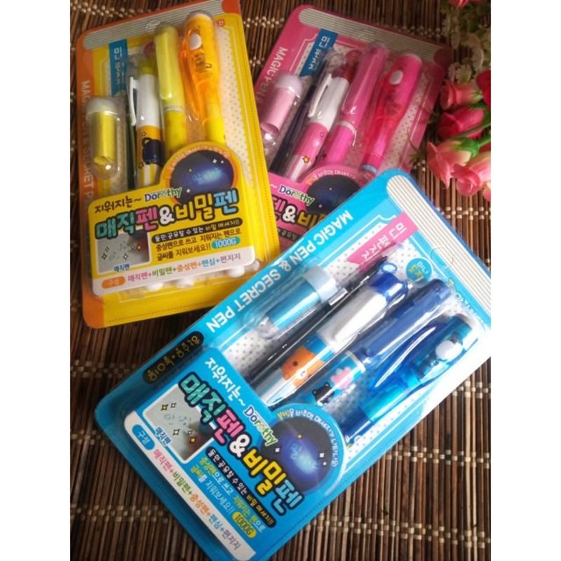 Pena ajaib, digunakan untuk menulis tanpa terlihat kasat mata. Untuk dapat membaca tulisannya, gunakan senter ultraviolet (UV) yang ada di ujung pena. Dapat digunakan di segala media seperti kertas, plastik, kaca, dsb.