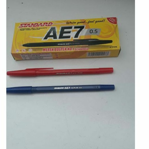 Pen ae7 warna terdiri hitsm,merah,biru.