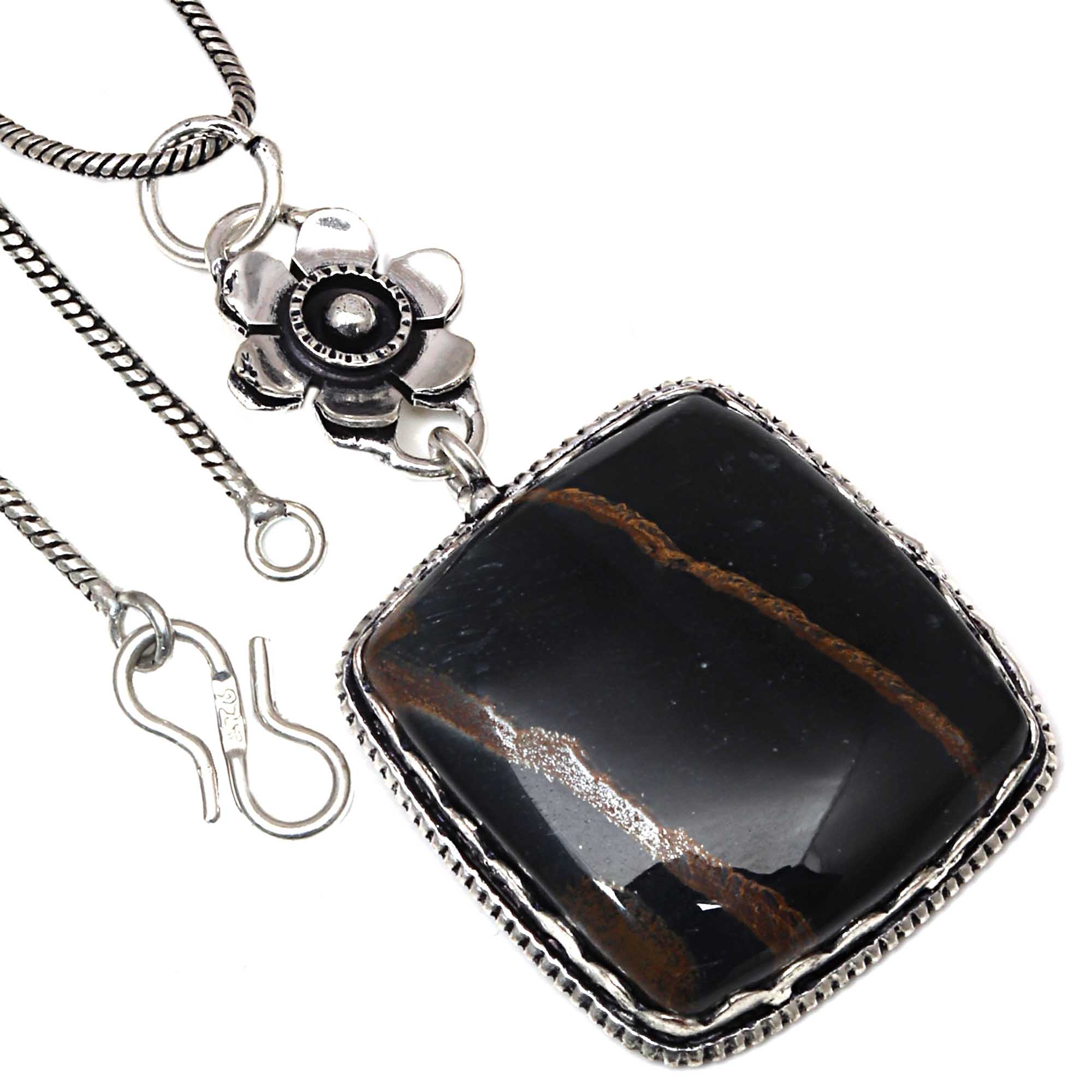Pendant Black Tiger s Eye Gemstone Handmade Antique Silver Jewelry 2.25